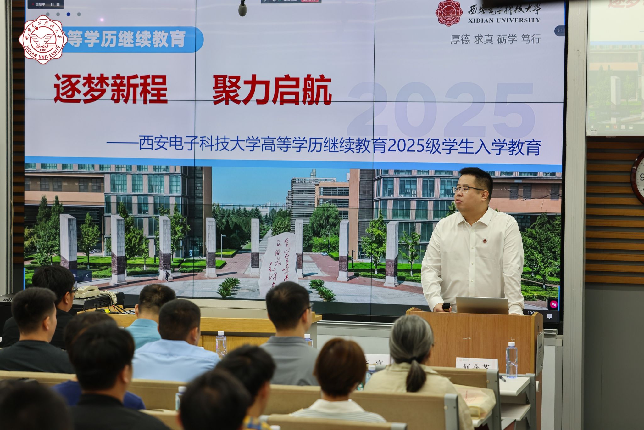 (通讯员 赵秀珍 魏勤勤)逐梦新程,聚力启航。9月6日上午,304永利高等学历继续教育2025级学生与全日制新生齐聚南校区远望谷体育馆,共同参加了学校隆重的开学典礼活动。典礼结束后,304永利举办2025级学生入学教育活动。学院党总支书记张武军、院长沈强、副院长何燕芝,各校外教学点代表以及100余名学生代表现场参与了活动,同时还有全国2000余名学生通过“西电智课”平台线上同步参加。入学教育活动由副院长何燕芝主持。