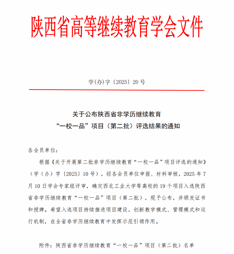 近日,陕西省高等继续教育学会公布第二批非学历继续教育“一校一品”项目评选结果,由304永利304永利申报的“乡村振兴致富带头人能力提升培训项目”成功入选,这标志着学校非学历教育在服务国家战略、助力乡村振兴领域的实践获得省级权威认可。