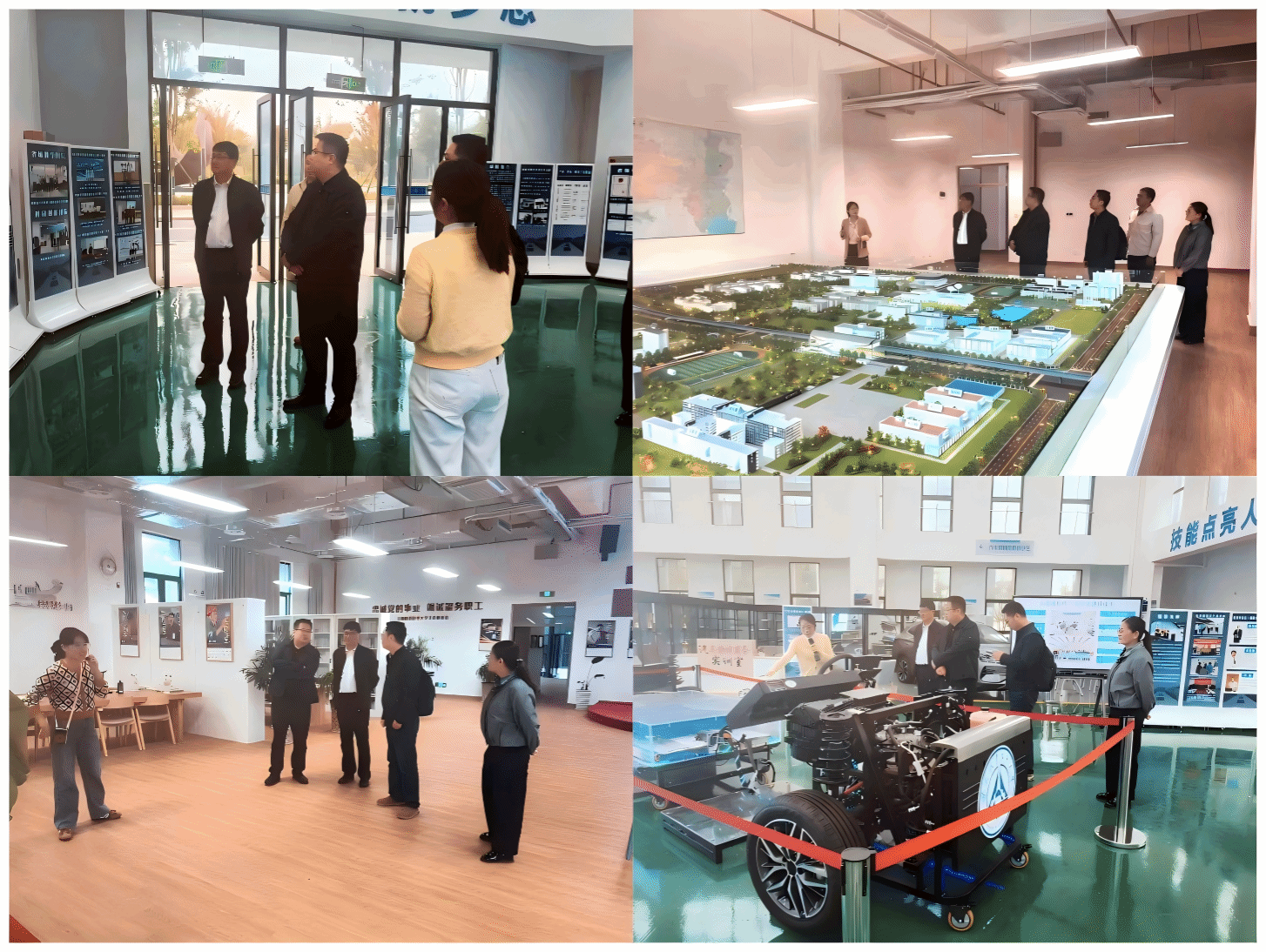 会前,沈强一行实地参观了安徽职业技术大学校史馆、规划室、工匠学院及新能源汽车产教融合实训基地,重点检查其硬件设施、实践教学条件及学生管理服务体系。