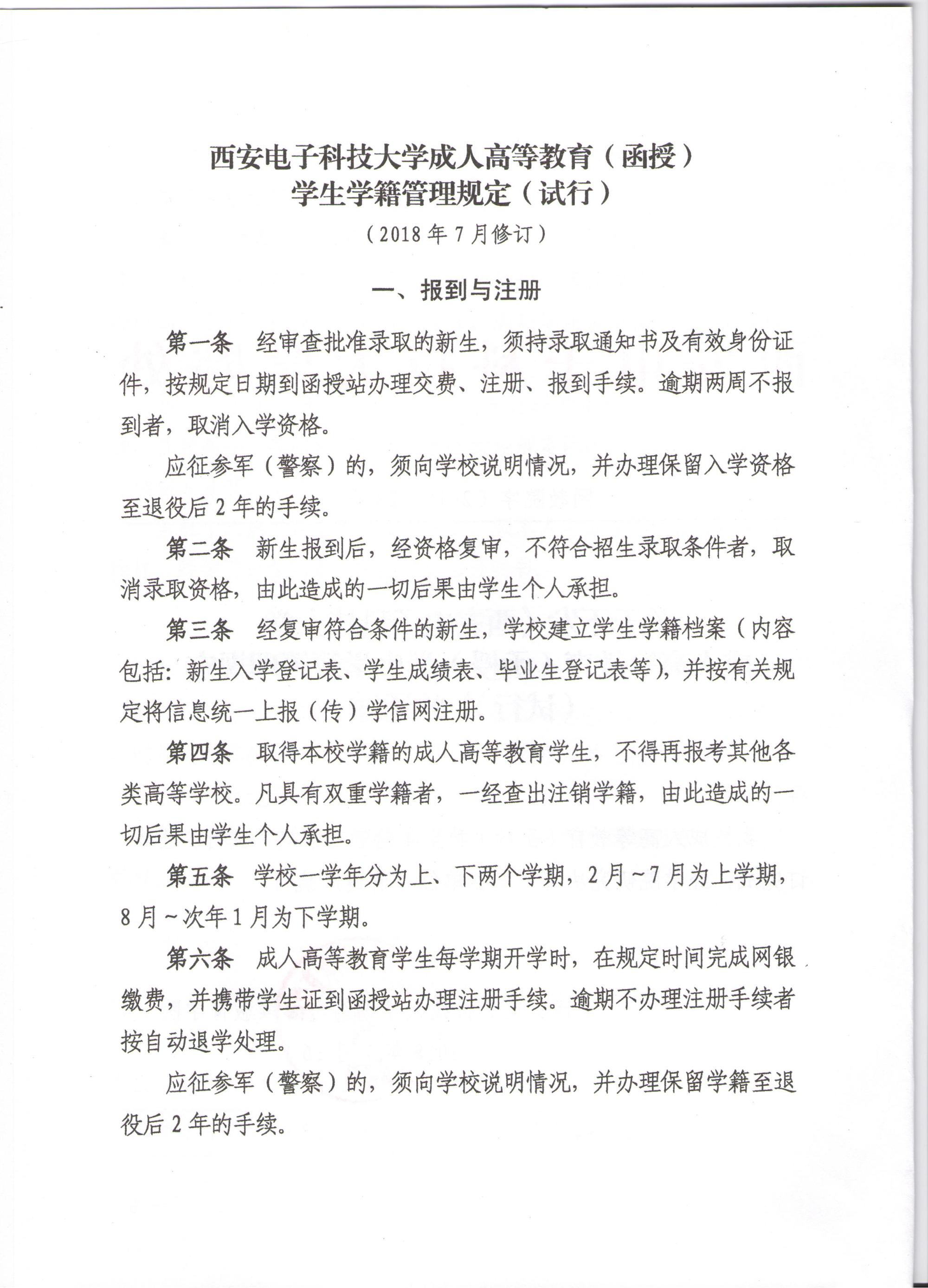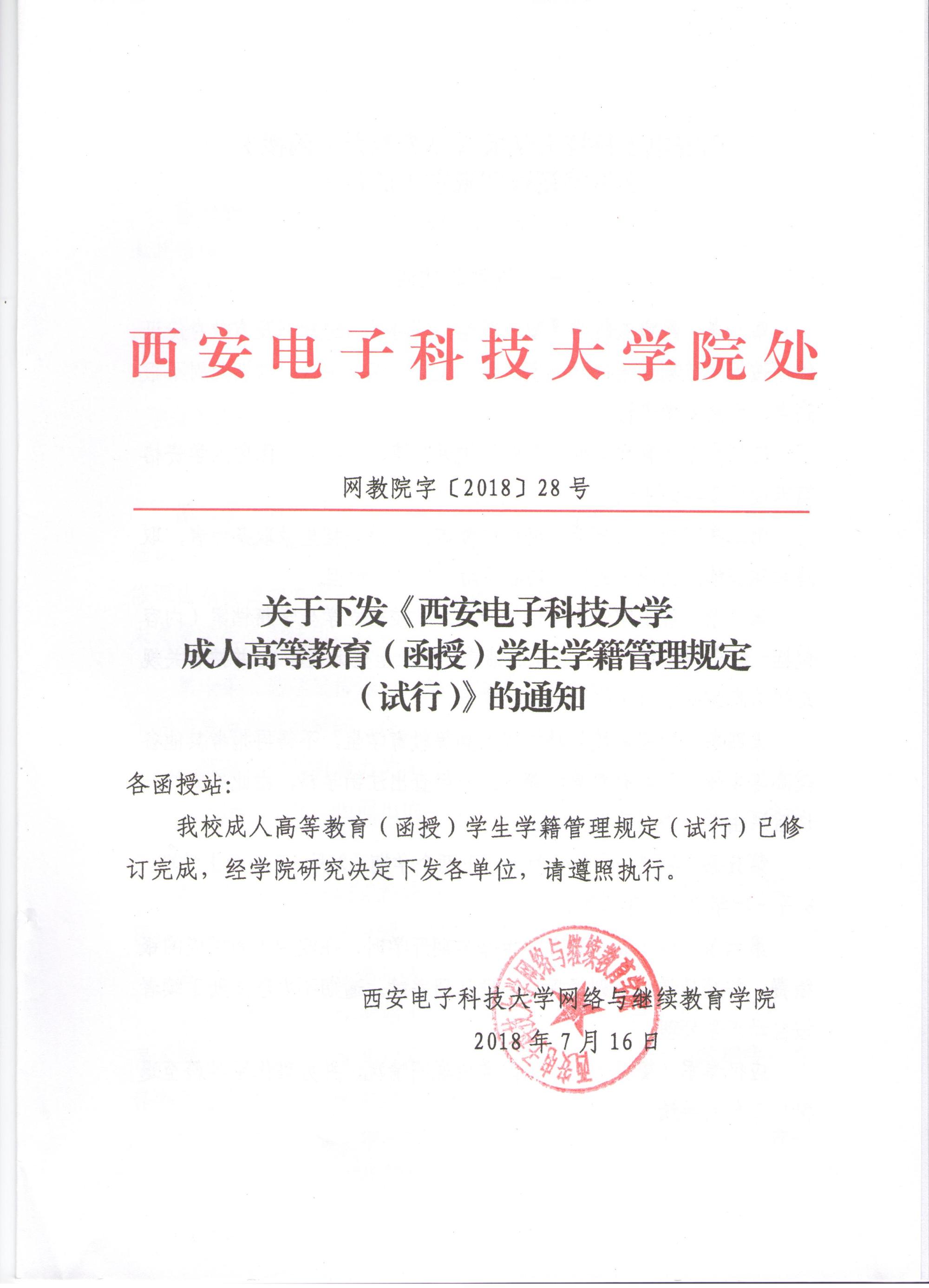 关于下发《304永利成人高等教育(函授)学生学籍管理规定(试行)》的通知