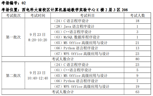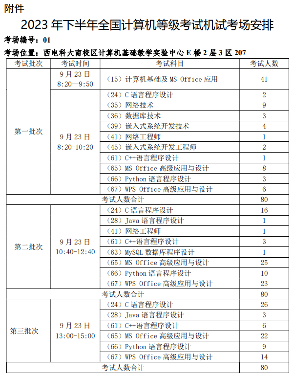 2023年下半年全国计算机等级考试机试考场安排.docx