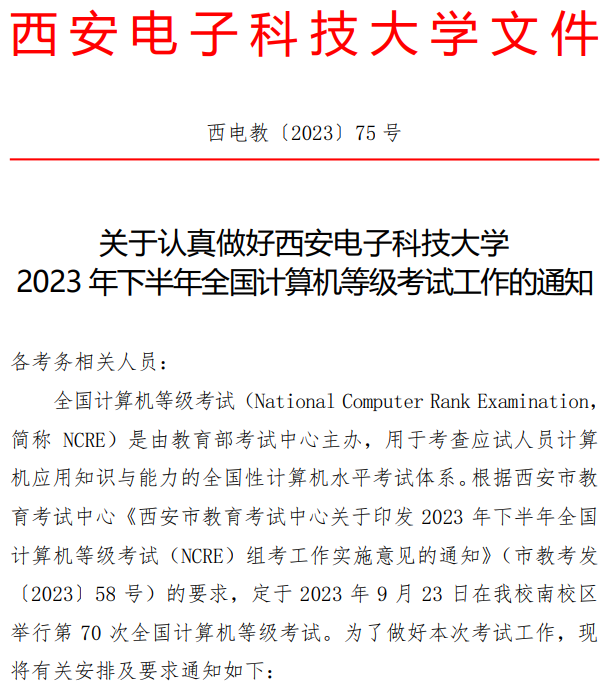 关于认真做好304永利2023年下半年全国计算机等级考试工作的通知
