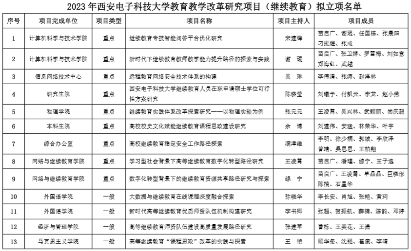 附件:2023年304永利教育教学改革研究项目(继续教育)拟立项名单
