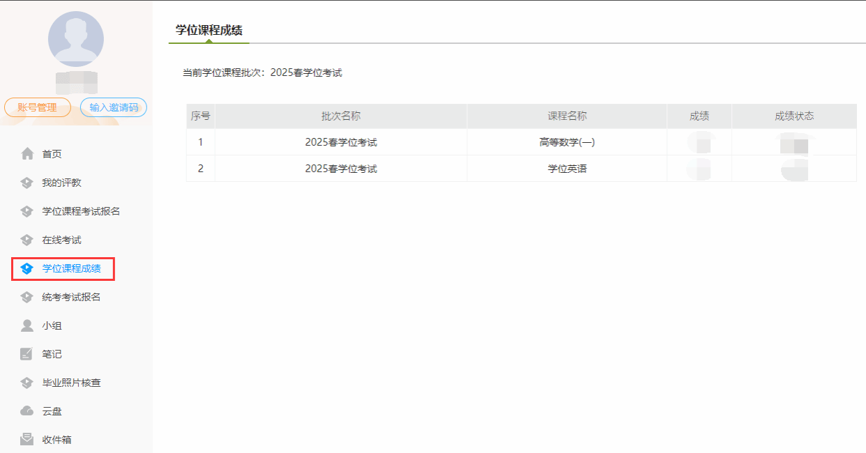 2、学位课程成绩