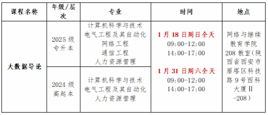 2.线下面授课程的考核成绩计入该课程总考核成绩,其中《大数据导论》线下面授考核成绩占课程考核成绩的20%。