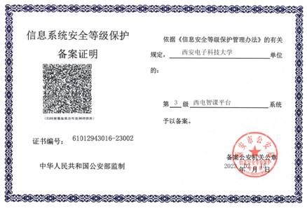 “西电智课平台”三级等保备案证明