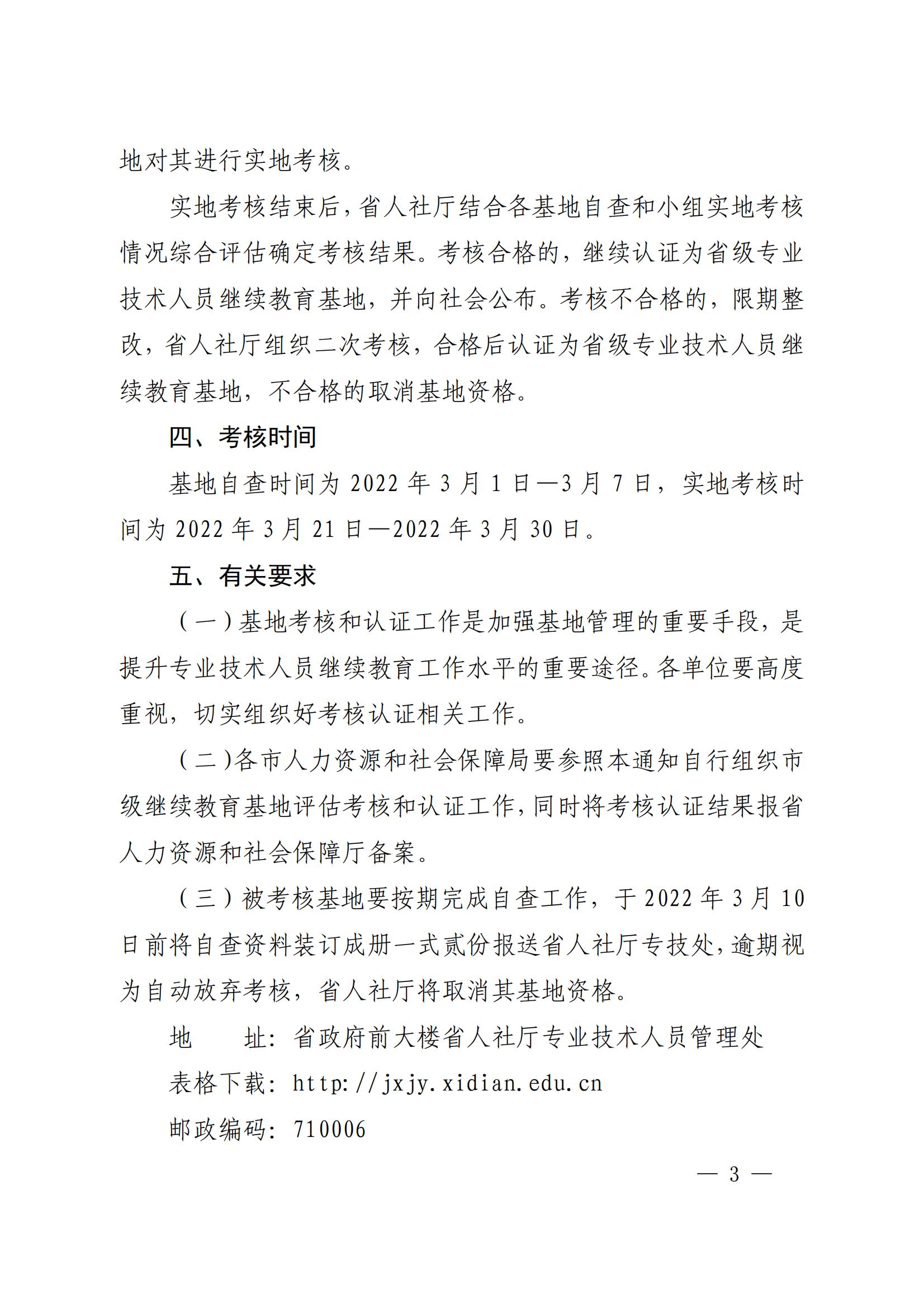 陕西省人力资源和社会保障厅关于开展省级专业技术人员继续教育基地考核和认证工作通知