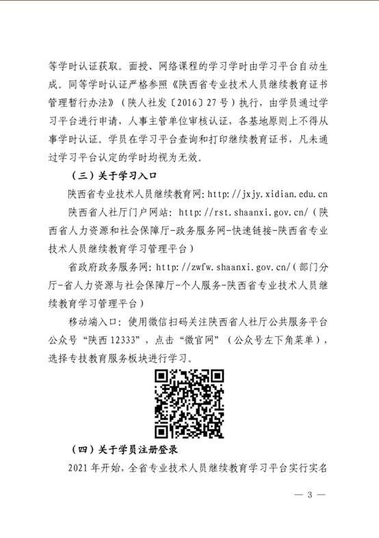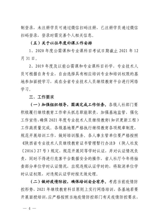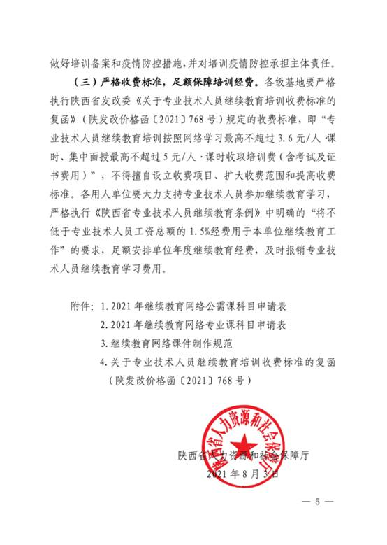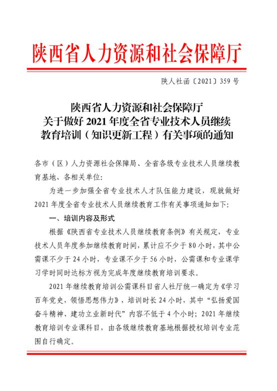 陕西省人力资源和社会保障厅关于做好 2021 年度全省专业技术人员继续教育培训(知识更新工程)有关事项的通知