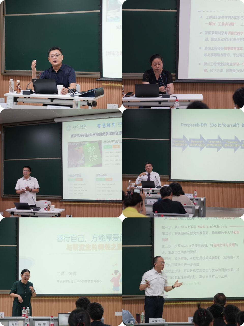 在理论授课环节,304永利苗启广教授以《人工智能赋能高等教育高质量发展》为题率先开讲,聚焦人工智能赋能路径,解读了大模型技术的核心概念,提出了AI发展挑战的应对之策。王爽教授带来《服务需求、校企协同西电卓越工程师培养实践与探索》报告,围绕服务需求与校企协同,分享西电卓越工程师培养的实践探索经验。王新怀教授结合教学实践,讲授《“AI+模电实验”智能化教学平台建设与实践》课程,分享了基于AI技术搭建的远程真实实验平台,为实验教学数字化转型提供新思路与实用技巧。魏萍教授以《善待自己,厚爱他人——与研究生的相处之道》为题,结合心理卡牌、案例研讨等互动形式,传授师生沟通技巧,助力研究生培养和谐导学关系。西安交通大学周屈兰教授立足课程创新,以《基于人工智能的新形态智慧课程与课程思政》为题,介绍如何运用AI技术构建智慧课程,以及如何巧妙融入课程思政元素,探索在知识传授中自然渗透价值观引导的方法,助力培养德才兼备的新时代人才。西北农林科技大学张宏鸣教授紧跟技术前沿,以《DeepSeek新锐突围,生成式AI助力教学科研管理效能跃升》为题,从国家战略层面延伸至DeepSeek的崛起历程,系统阐述AI在教学、科研、办公场景中的赋能作用。