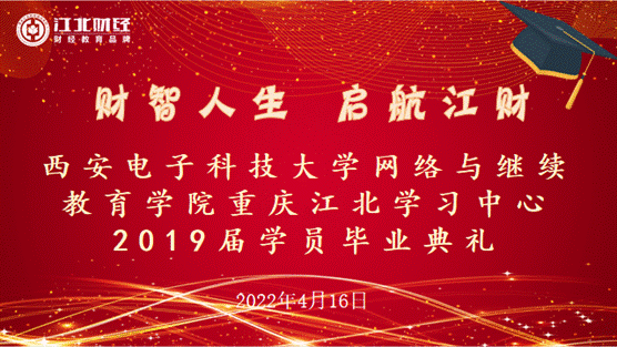 时光荏苒,岁月如梭。又是一年毕业季,又是一年收获时!为了给江财的毕业学子留下最美的回忆,2022年4月16日,江北财经培训学校精心准备了一场温情满满的毕业典礼,为毕业学子送行。鉴于疫情防控,毕业典礼活动现场采用“线下+直播”的形式,各地的毕业生和校友通过网络观看直播,共同见证了2019届毕业生们开启人生新征程的难忘时刻。
