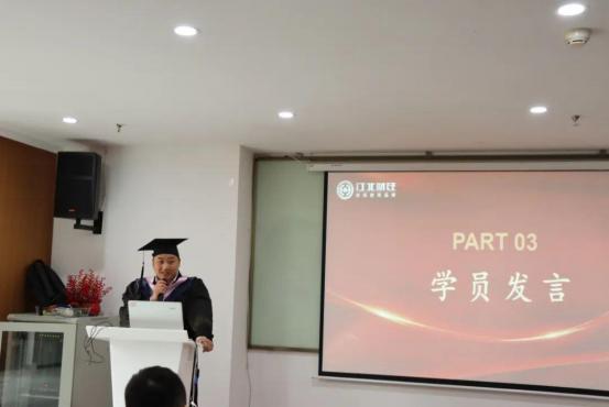 学员代表慷慨激昂,不仅表达了对老师的帮助之情、对同学们的不舍之情,也表达了自己未来将持续学习,继续进步的坚定信心,言语字句铿锵,赢得了在场大家的掌声。