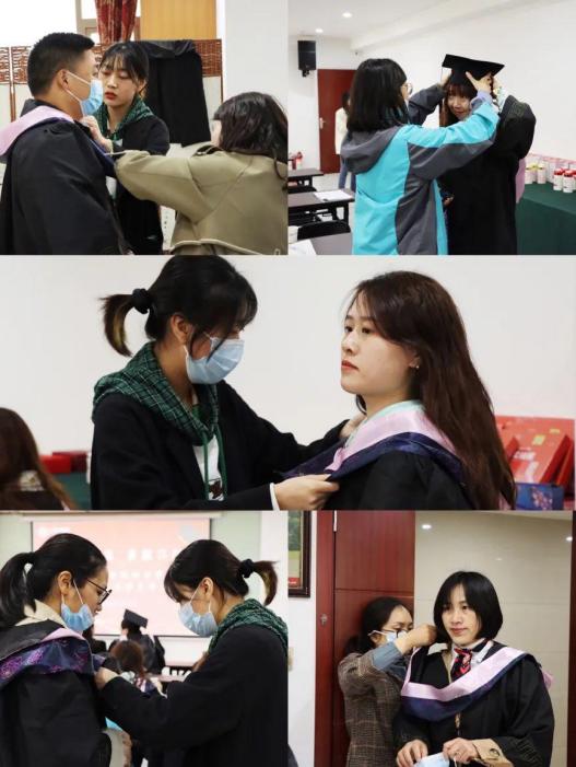 随后,江财的老师们帮助到场的同学更换学士服、整理着装。细致周到的为同学们