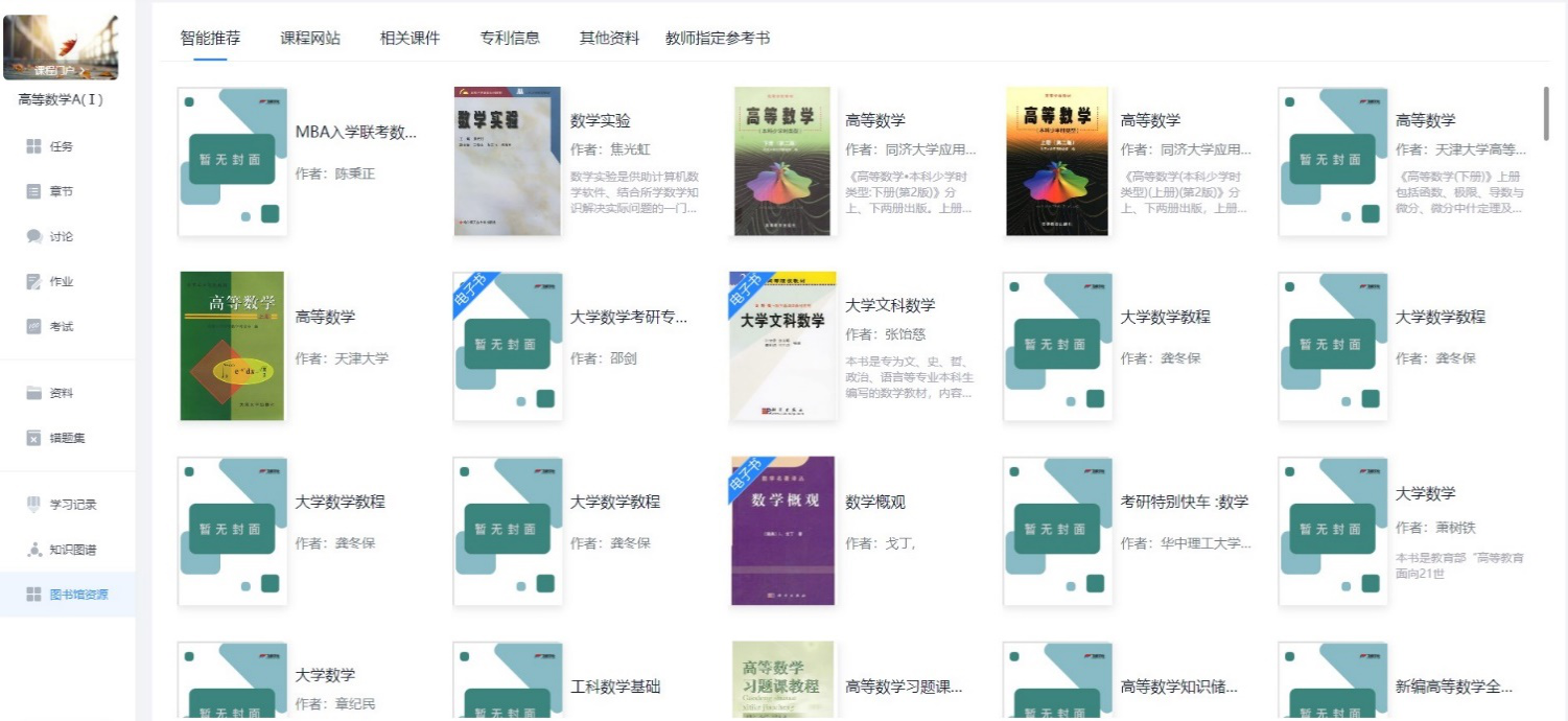 近日,在网教院和图书馆的共同努力下,以为师生提供精准化个性化服务为目标,图书馆资源与学校智课平台系统成功进行了对接,实现跨平台服务,助力线上线下混合式学习需求。图书馆相关资源精准对接在智课平台的课程页面上,既能避免学生因不停切换平台带来的不便,也能扩展学生所学课程相关知识的维度。欢迎广大师生积极访问使用,并提出宝贵意见。 用户通过登录智课平台(链接:http://xdspoc.xidian.edu.cn/),即可访问相关功能。目前共有六大板块,包括智能推荐(纸电图书)、课程网站、相关课件、专利信息、其他资料、教师指定参考书等部分。其中部分书籍资源拥有电子书数据标签,可通过链接进入电子书数据库访问。目前电子书数据库有可知、方正Apabi、科学文库、畅想之星、清华文泉、Springer、Elsevier、Wiley、爱教材、IEEE多种、IET、Emerald等。